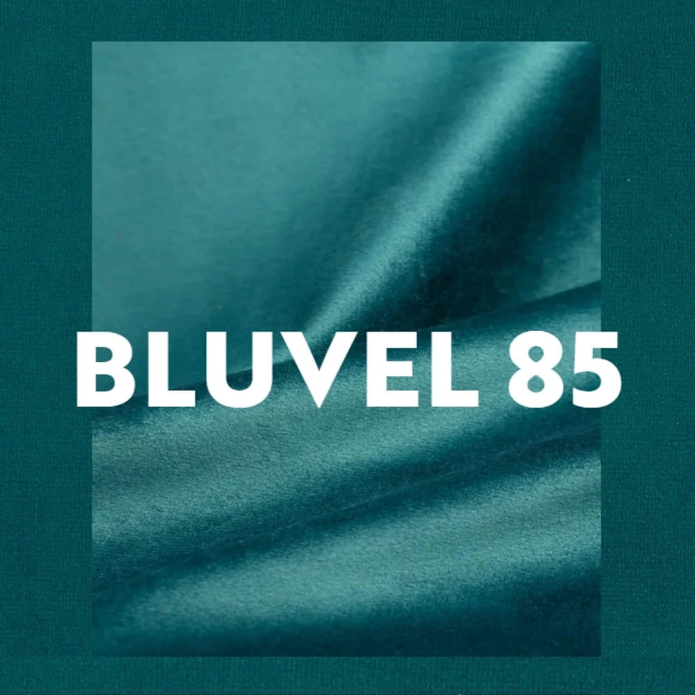 Hoker tapicerowany jest welurem BLUVEL, który wyróżnia się miękkością i subtelnym połyskiem. Materiał podkreśla elegancki charakter wnętrza i dobrze sprawdza się w codziennym użytkowaniu.