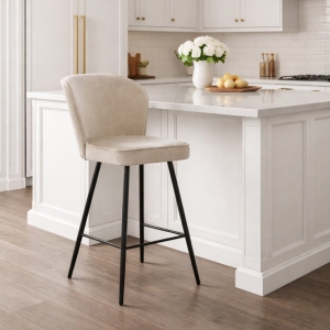 Siedzisko z pianki oraz profilowane oparcie zapewniają wygodę i stabilne podparcie podczas długiego siedzenia przy wyspie.