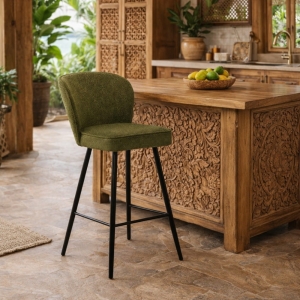 Siedzisko z pianki oraz profilowane oparcie zapewniają wygodę i stabilne podparcie podczas długiego siedzenia przy wyspie.