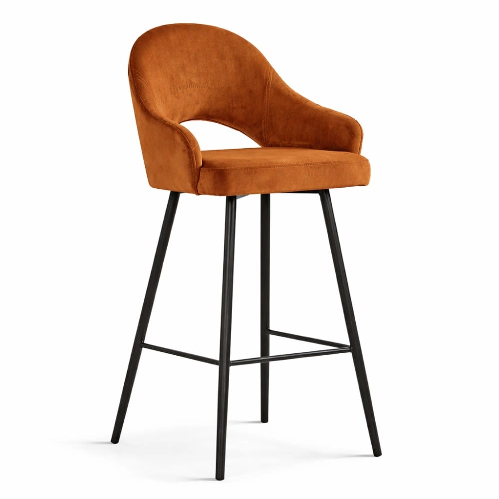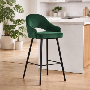 Hoker GODA L to elegancki model stworzony z myślą o wyspach kuchennych o wysokości około 100 cm. Miękkie tapicerowane siedzisko, wygodne podłokietniki oraz nowoczesna forma sprawiają, że doskonale łączy wygodę z designem premium. Wersja w tkaninie Bluvel zachwyca subtelnym połyskiem weluru i bogatą paletą kolorów. Produkt wykonywany na zamówienie.