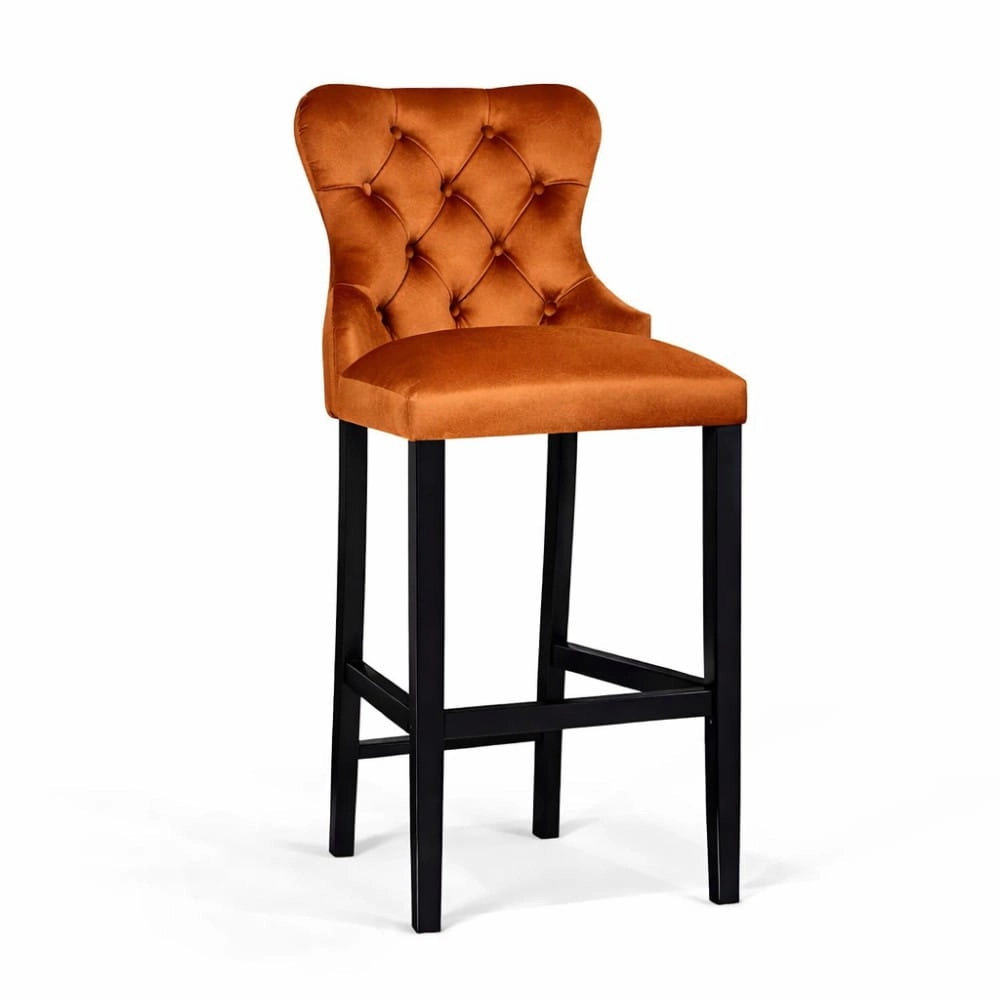 Hoker MADAME niski to elegancki model stworzony do wysp kuchennych o wysokości około 90 cm. Stylowa forma inspirowana klasyką, tapicerka BLUVEL oraz bukowe nogi i drewniany stelaż tworzą wyjątkowy mebel do pięknych wnętrz. polska produkcja • na zamówienie • personalizacja drewna i tkanin