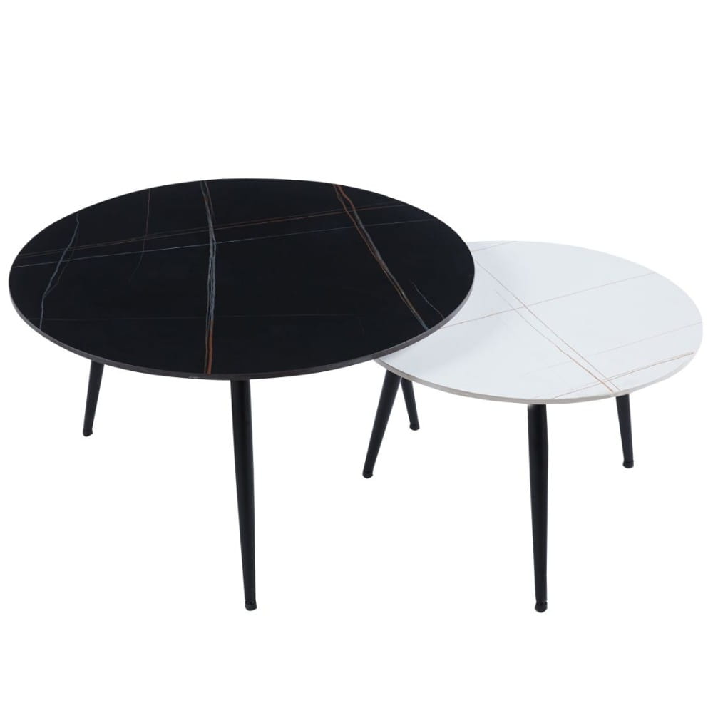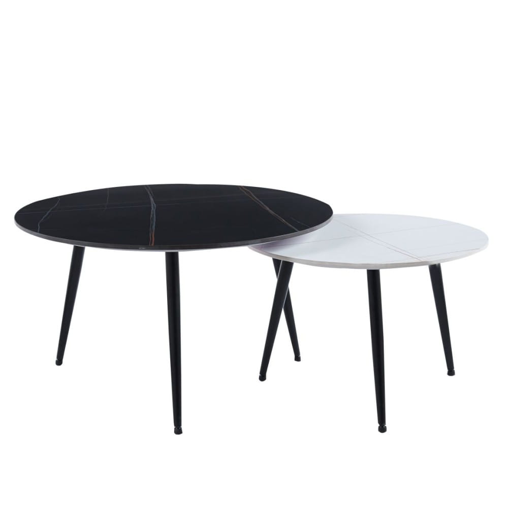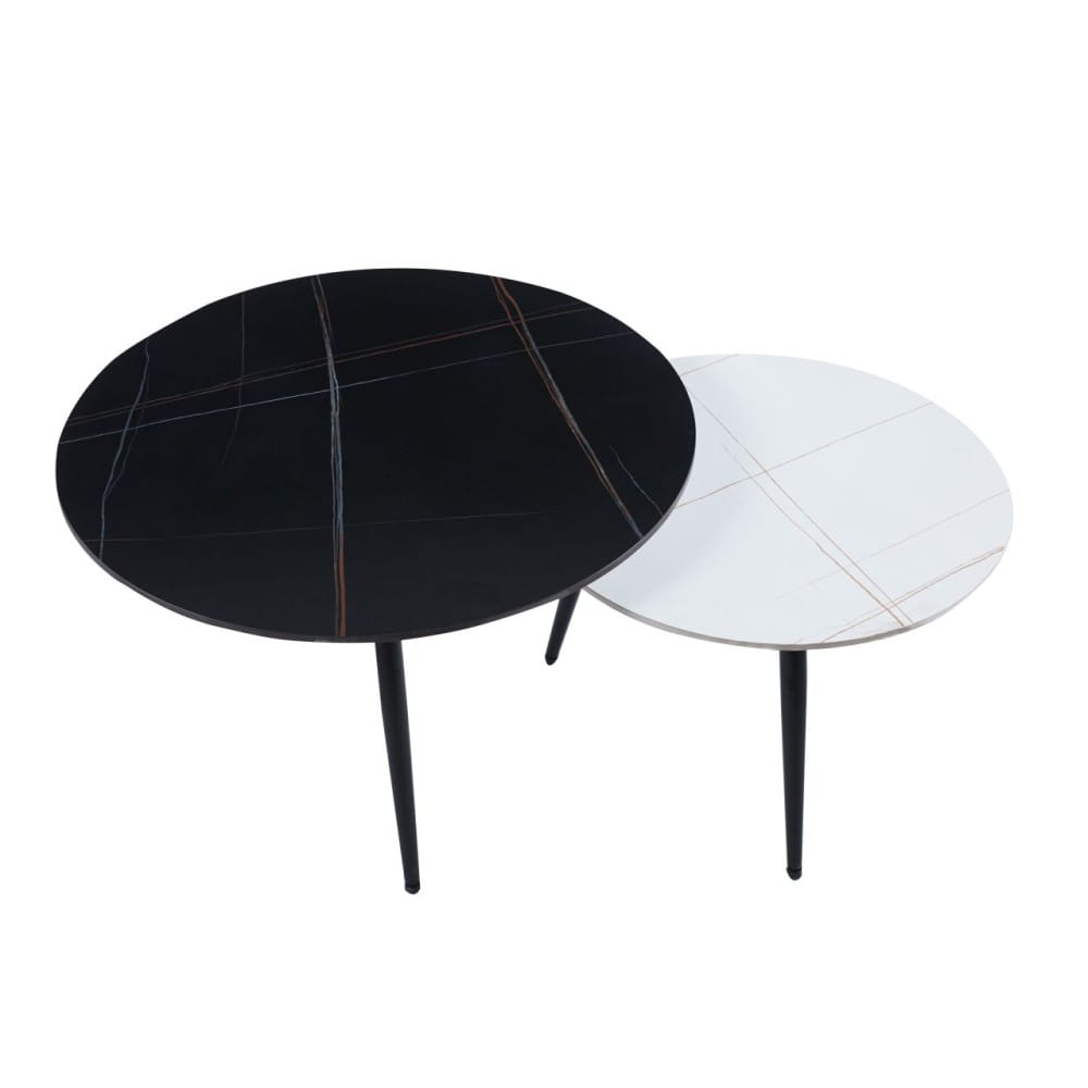 Zestaw stolików kawowych HOLI – biało-czarny, ceramika mat, metalowy stelaż