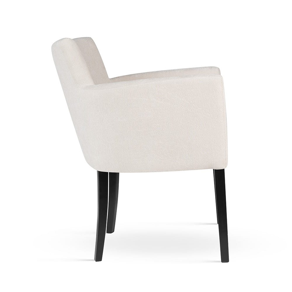 AZURRO Dream to krzesło fotelowe do jadalni, które daje odczucie komfortu jak w fotelu. Miękkie siedzisko, podłokietniki i otulająca forma sprawiają, że to idealny wybór dla osób, które szukają maksymalnej wygody przy stole. Tapicerowane tkaniną Dream, która jest miękka, przyjemna w dotyku i łatwa w czyszczeniu. Wiele wybarwień nóg do wyboru – na życzenie możliwe również kolory spoza standardowej oferty.