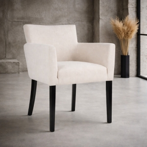AZURRO to krzesło fotelowe do jadalni, które łączy wygodę klasycznego fotela z funkcjonalnością krzesła. Szerokie siedzisko, podłokietniki i miękka forma sprawiają, że to model stworzony do długiego siedzenia.