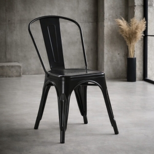 BURT to metalowe krzesło loftowe, które łączy surowy design z wysoką trwałością. Minimalistyczna forma i czarna, matowa konstrukcja sprawiają, że doskonale odnajduje się w nowoczesnych i industrialnych wnętrzach.