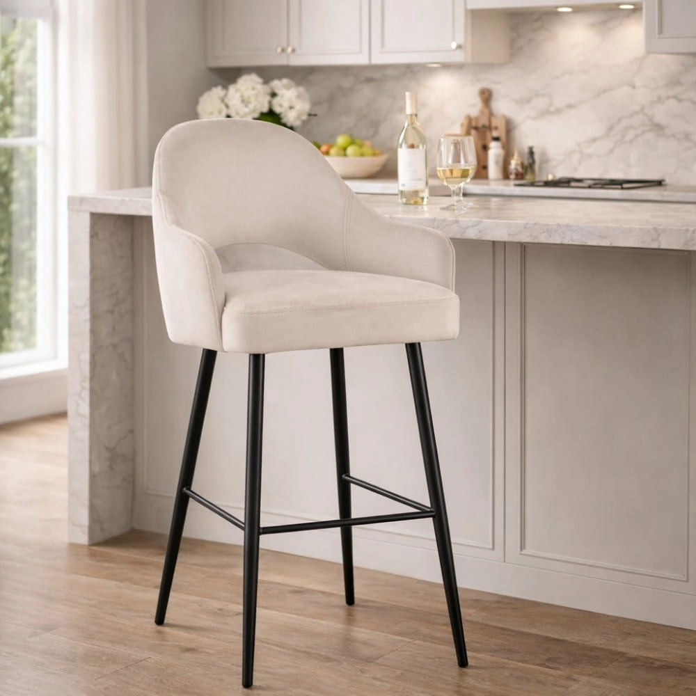 GODA SUPREME to elegancki hoker tapicerowany zaprojektowany do nowoczesnych kuchni, jadalni i wnętrz premium. Dzięki wysokości siedziska około 69 cm doskonale sprawdza się przy wyspach kuchennych o wysokości około 90 cm.