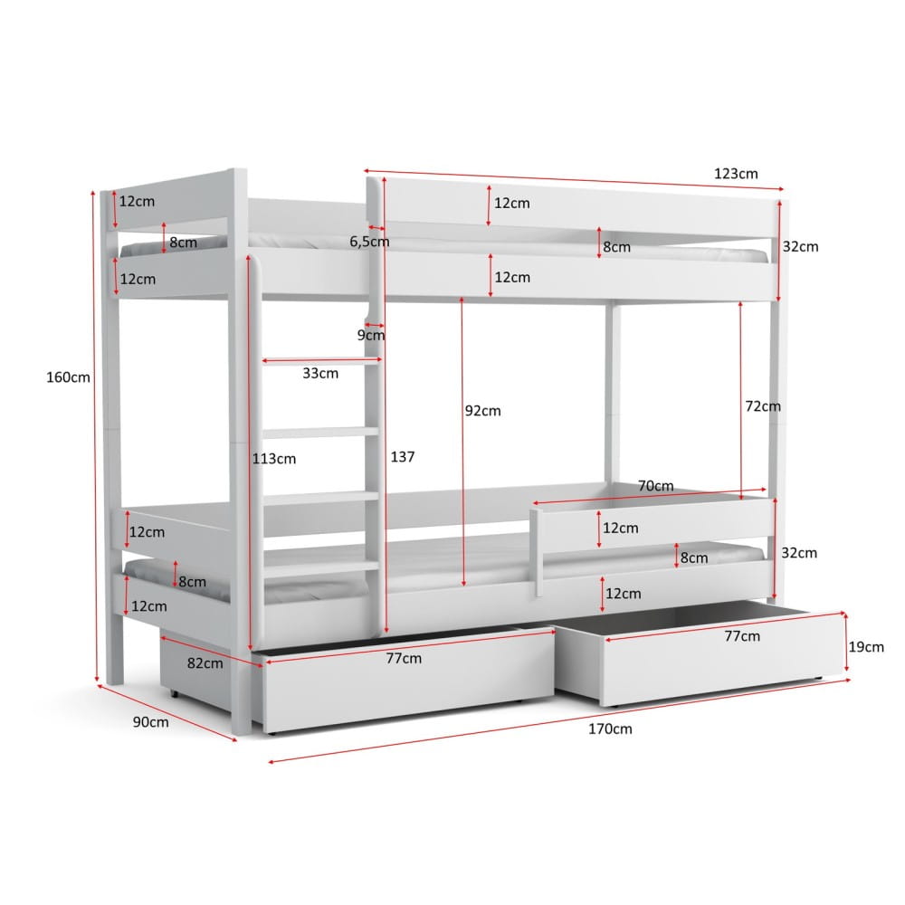 Bezpieczeństwo: dbamy o bezpieczeństwo Twoich pociech – łóżko zostało zaprojektowane z myślą o trwałości i ochronie. Barierki ochronne oraz stabilna konstrukcja sprawiają, że to idealny wybór do pokoju dziecięcego. Wybierz stylowe i praktyczne rozwiązanie, które posłuży przez długie lata!