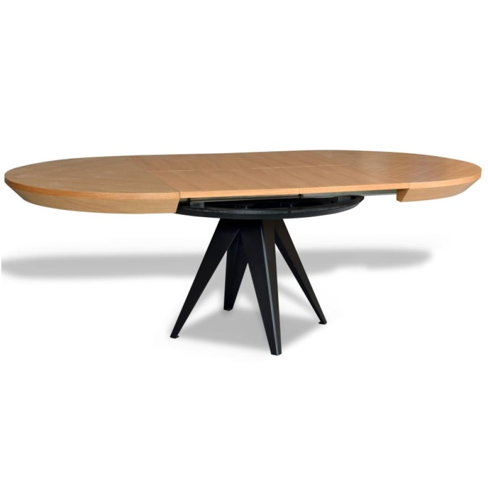 Stół LISA z forniru dębowego – rozkładany, metalowe nogi, ⌀120/220 cm
