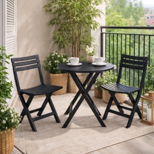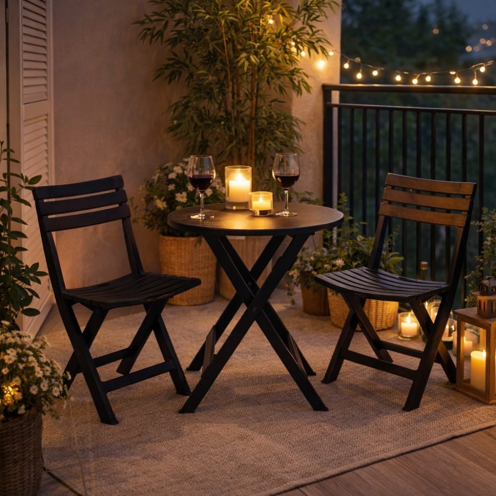 To kompaktowy zestaw balkonowy, który sprawdzi się tam, gdzie liczy się każdy centymetr. Doskonały do mieszkań w bloku, na małe tarasy i loggie.