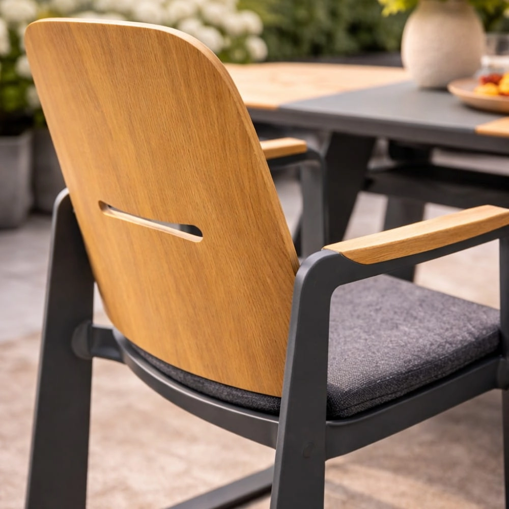 Połączenie aluminium i drewna teakowego tworzy elegancki, ponadczasowy styl, który nie wychodzi z mody.