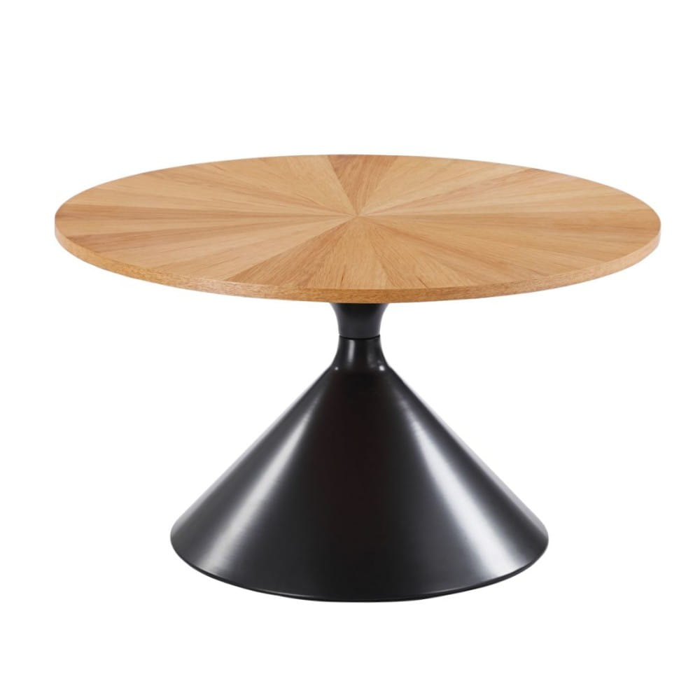Zestaw stolików kawowych TULIA 50 + 70 – dąb naturalny, czarna metalowa podstawa